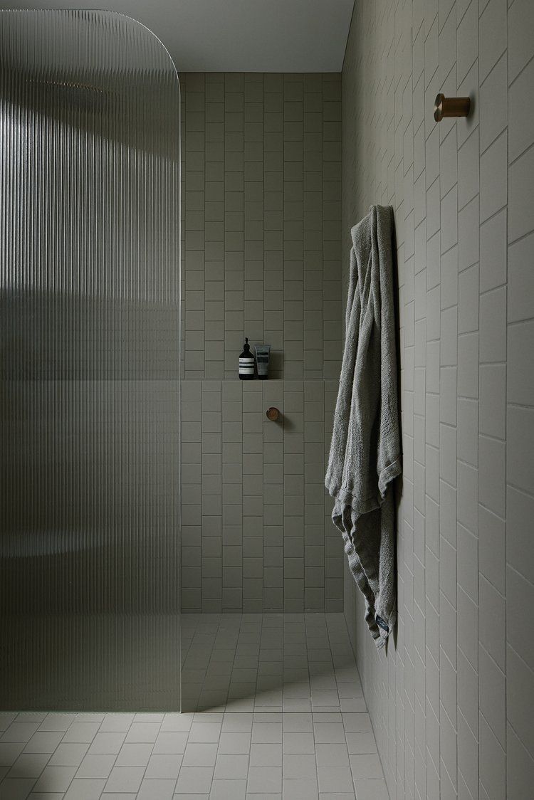 This brushed brass arch frame shower screen below is more ambitious but goes so well with the tiles.